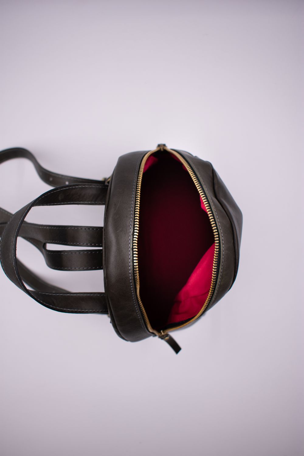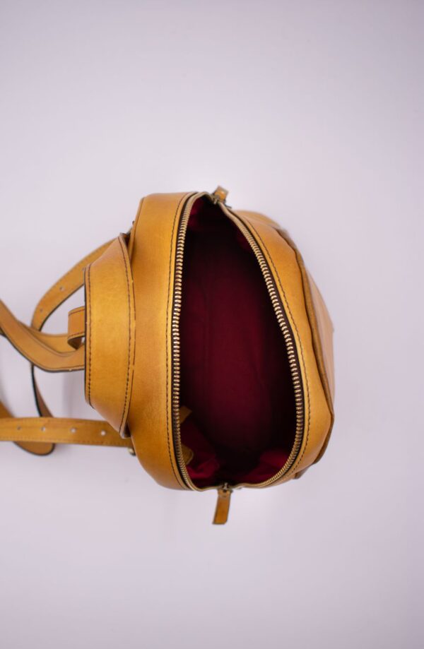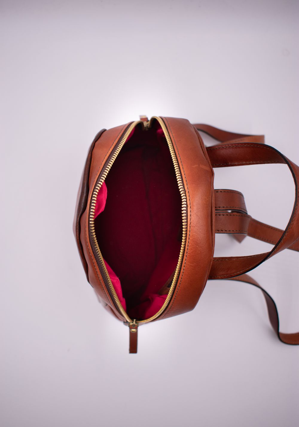 Zainetto prodotta col pellame di montone trattato al vegetale, tinta poi lavata.