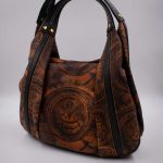 Borsa da spalla realizzata col pellame di montone morbido trattato al vegetale, stampate con l’astrolabio.