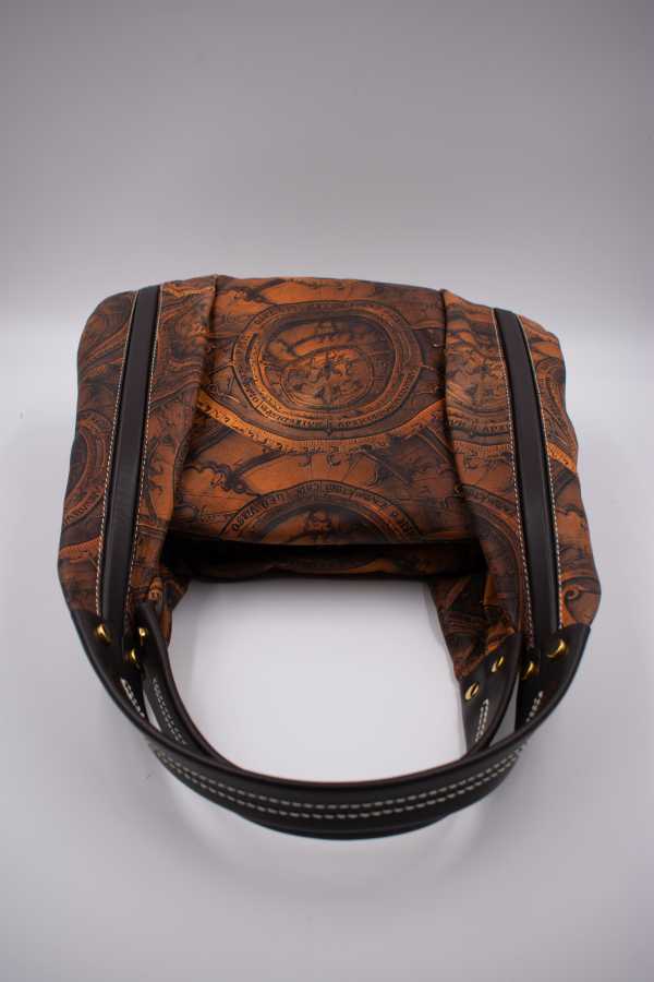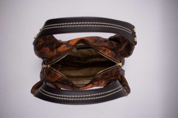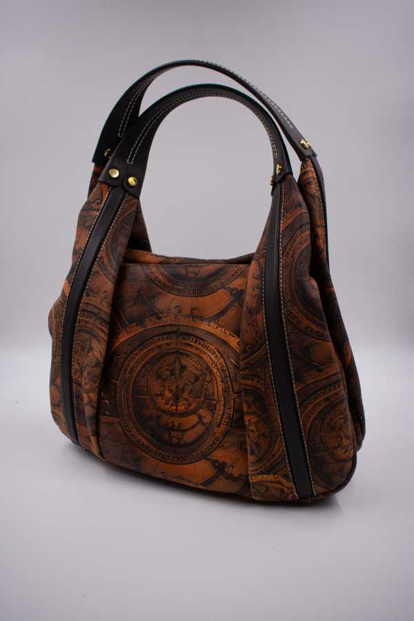 Shoulder bag produced in soft natural vegetable tanned mutton leather with Astrolabe digital print.